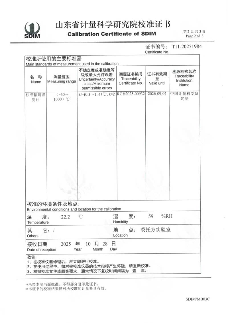 黑體輻射源(0-60°C)校準(zhǔn)證書 2025-11-5 本文被閱讀 43 次