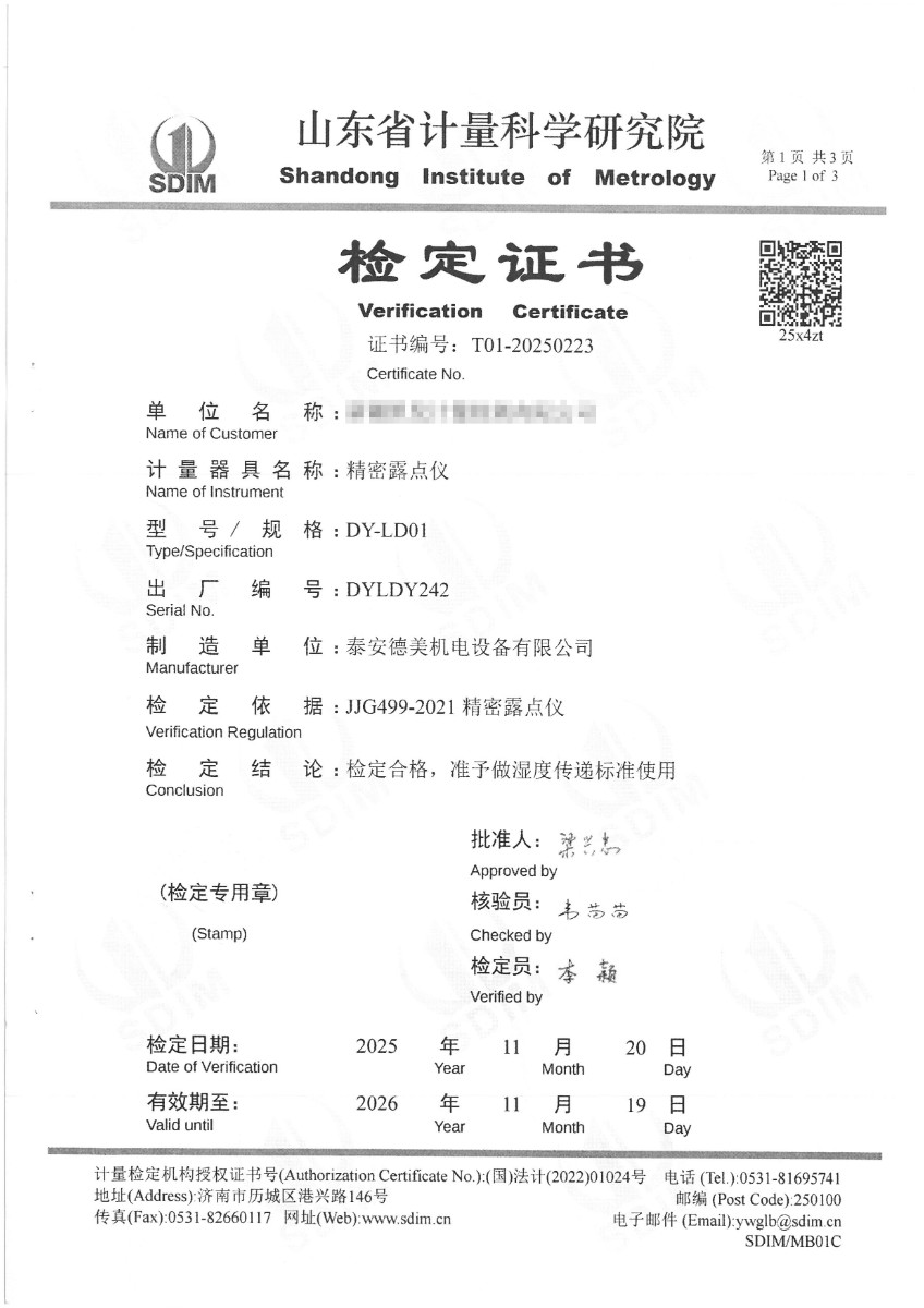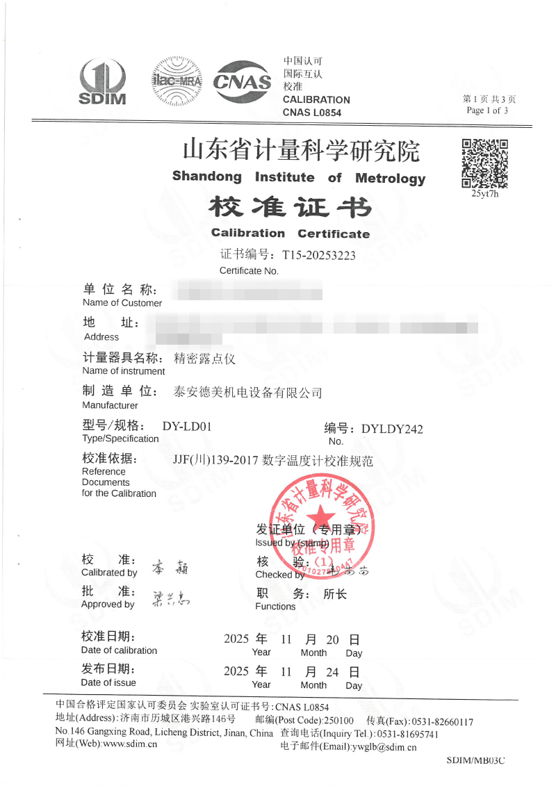 露點儀檢定、校準(zhǔn)證書 2025-12-4 本文被閱讀 270 次