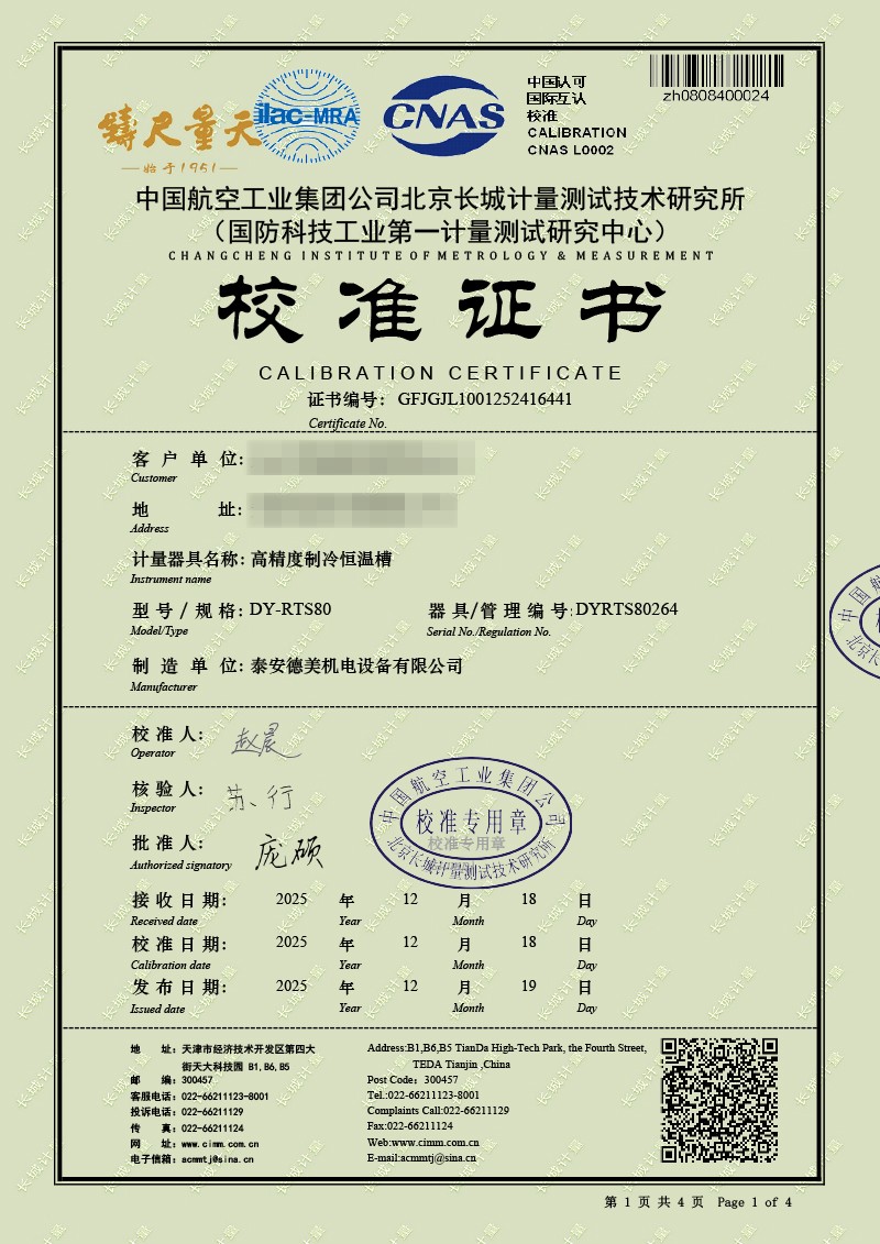 高精度制冷恒溫槽(-80~100℃)校準證書 2025-12-19 本文被閱讀 22 次
