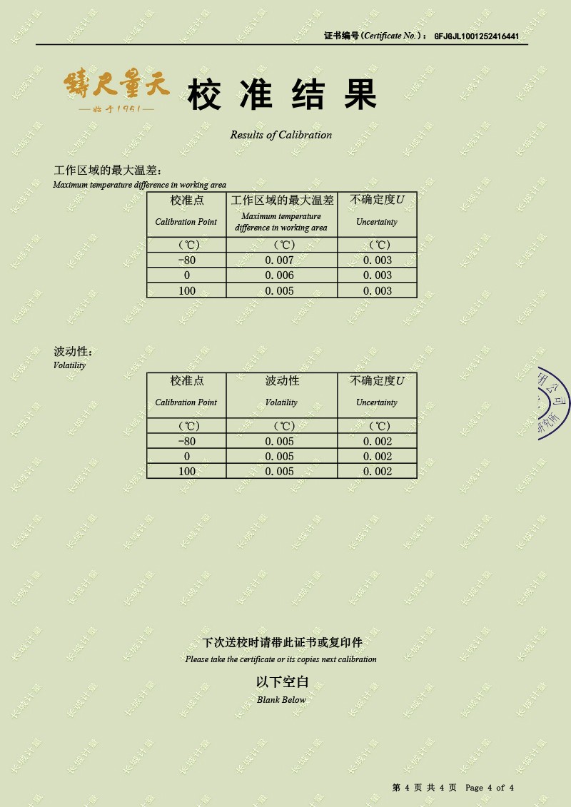 高精度制冷恒溫槽(-80~100℃)校準證書