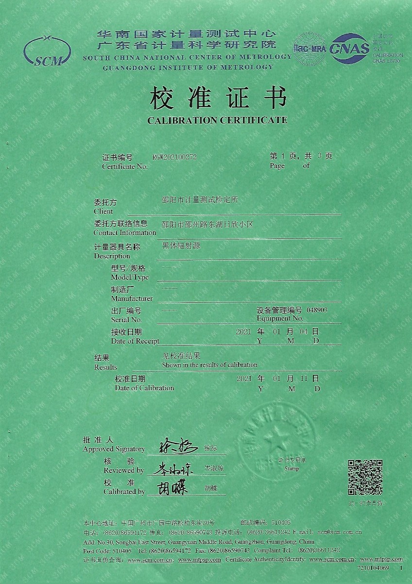 | 上一條:長(zhǎng)沙彼樂機(jī)電設(shè)備有限公司-體溫黑體爐耳溫部分 | 下一條:冷鏡式露點(diǎn)儀校準(zhǔn)證書 |