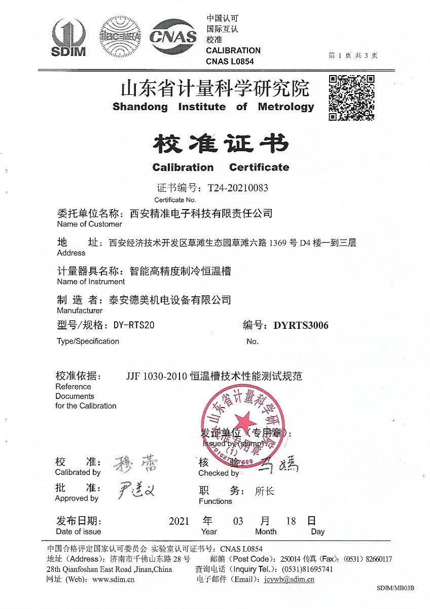 | 上一條:西安電子科技有限責(zé)任公司-智能高精度恒溫油槽 | 下一條:冷鏡式露點(diǎn)儀校準(zhǔn)證書 |