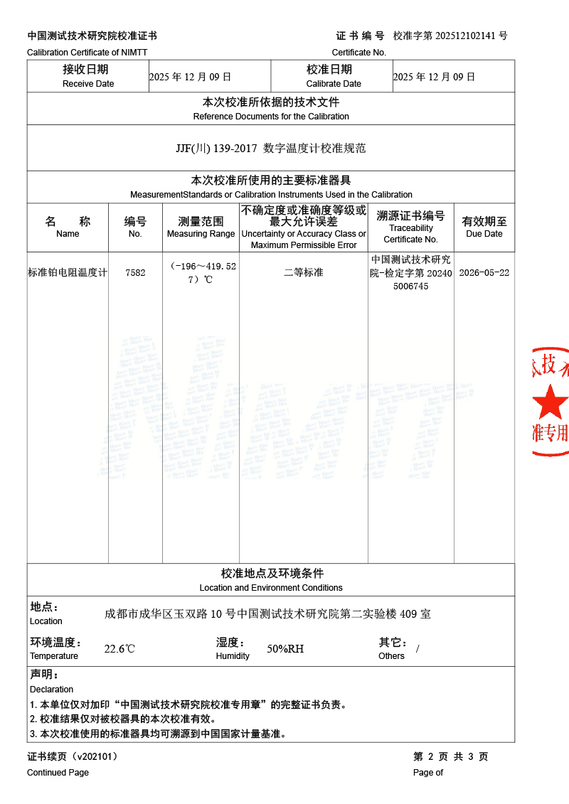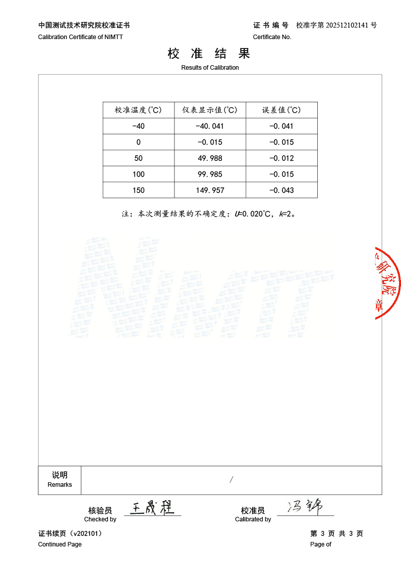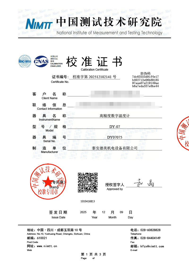 高精度數(shù)字溫度計(jì)校準(zhǔn)證書 2025-12-11 本文被閱讀 61 次