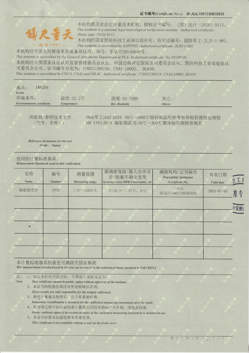 上一條:廣西航拓計(jì)量檢測(cè)有限公司-溫濕度巡檢儀、工業(yè)熱電偶 | 下一條:超低溫面源黑體爐(-40-80℃)校準(zhǔn)證書(shū) |