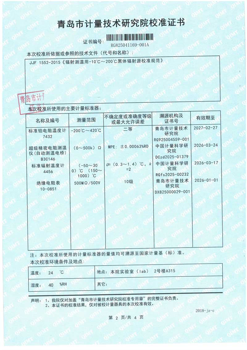 額溫計黑體空腔校準證書 2025-11-5 本文被閱讀 60 次
