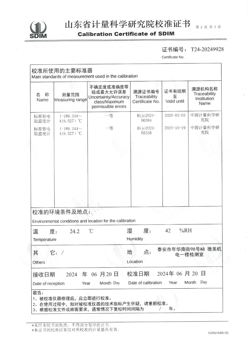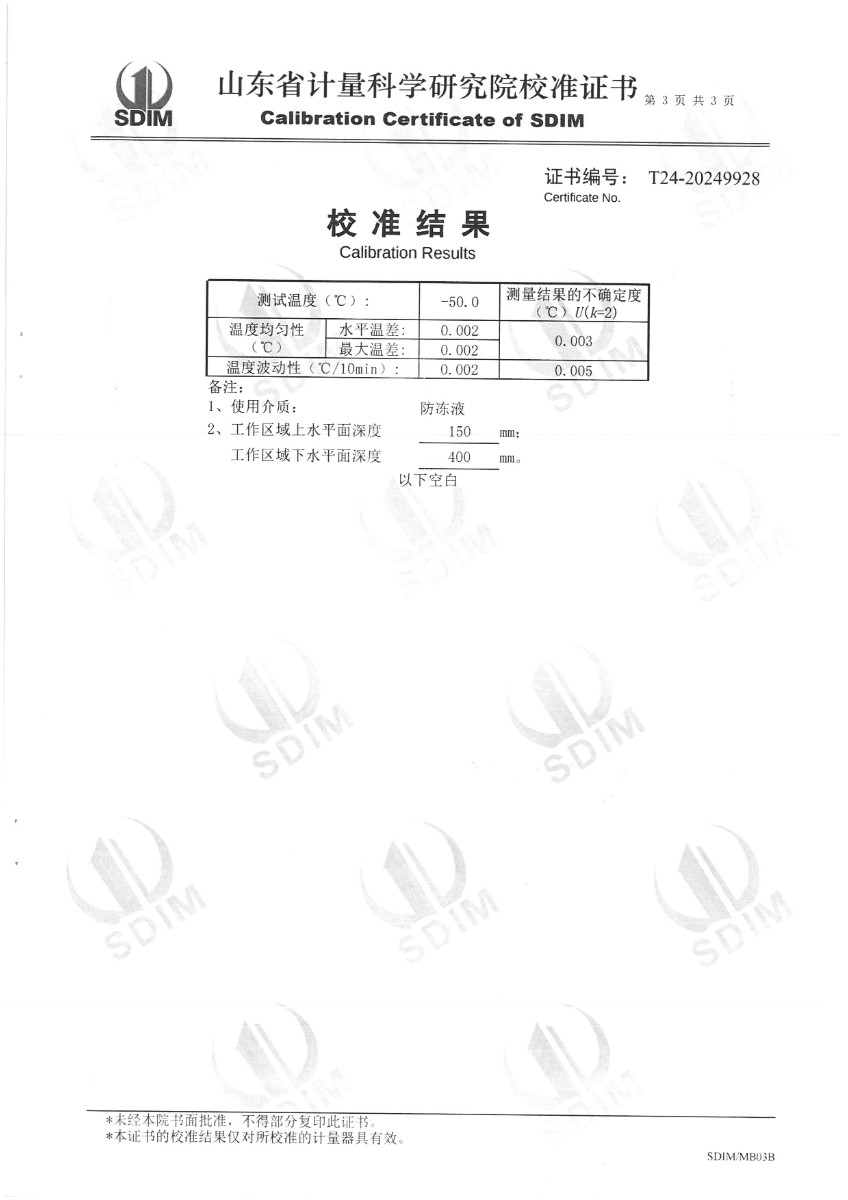 制冷恒溫槽(-50~95℃)校準證書 2024-6-26 本文被閱讀 5981 次