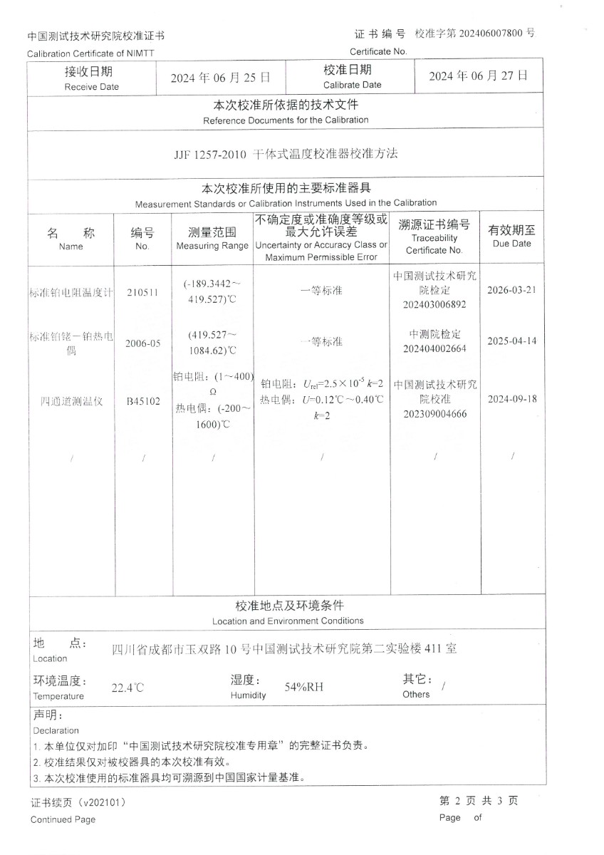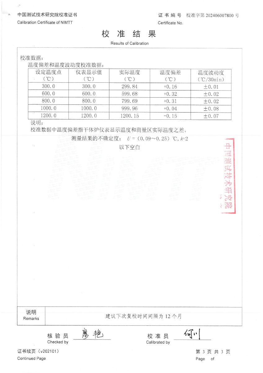 | 上一條:低溫干體爐(-30~150℃)校準(zhǔn)證書 | 下一條:溫濕度檢定箱(-5~65℃)校準(zhǔn)證書 |