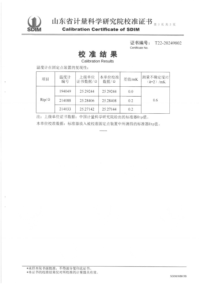 | 上一條:高精度數(shù)字溫度計(jì)(30~150℃)校準(zhǔn)證書 | 下一條:便攜式干體爐(-30-150℃)校準(zhǔn)證書 |
