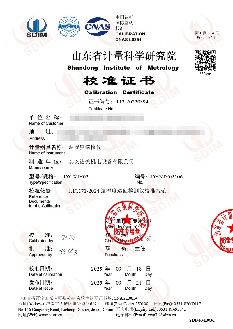 溫濕度巡檢儀校準(zhǔn)證書 2025-9-23 本文被閱讀 713 次