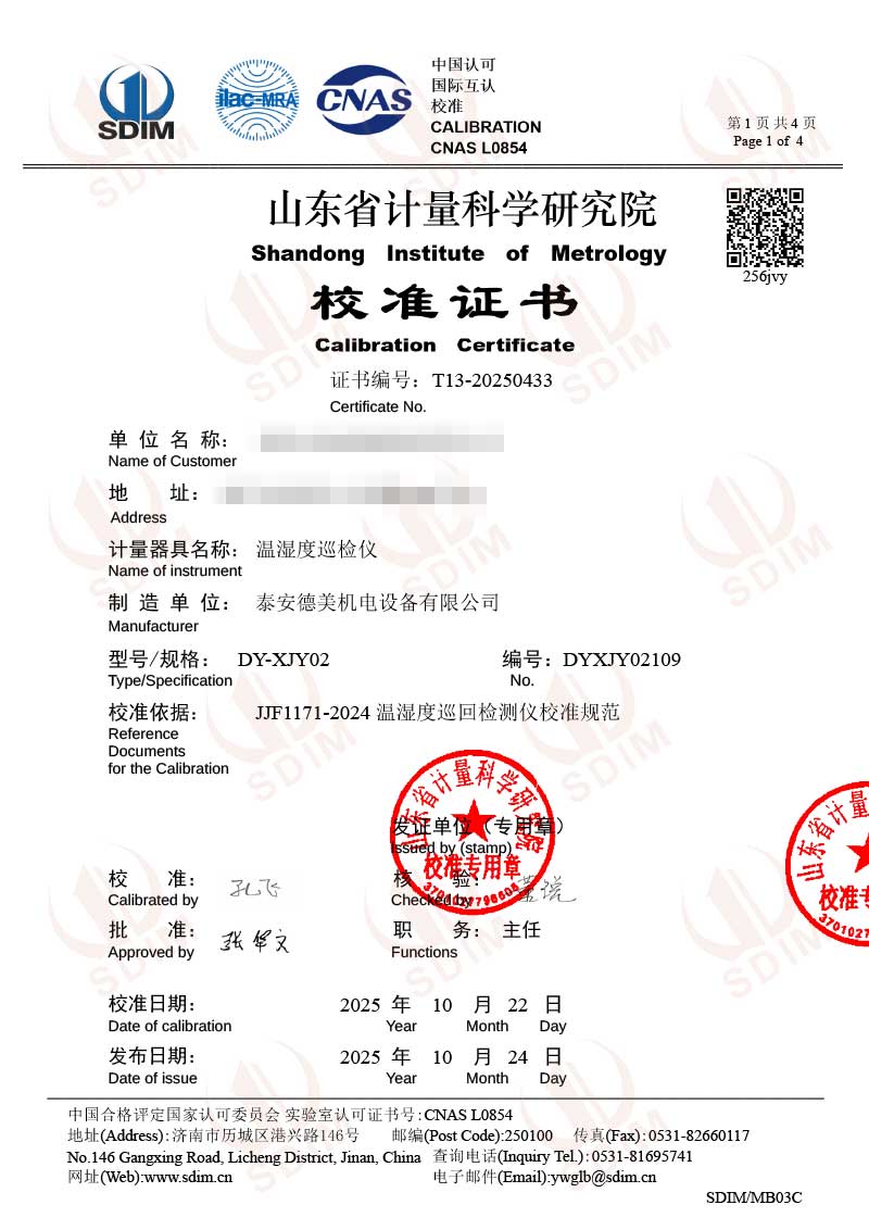 溫濕度巡檢儀校準證書 2025-10-30 本文被閱讀 44 次