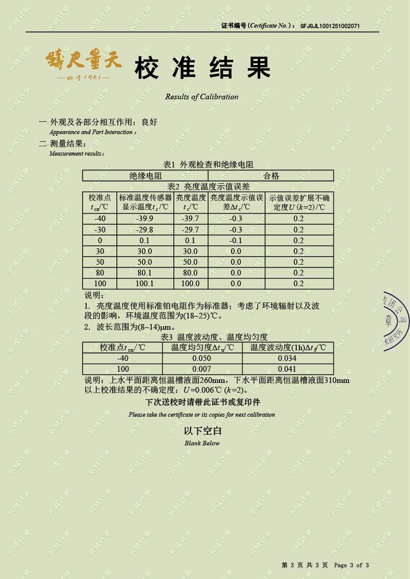 | 上一條:溫濕度巡檢儀校準(zhǔn)證書 | 下一條:便攜式溫濕度檢定箱(-10-60℃)校準(zhǔn)證書 |