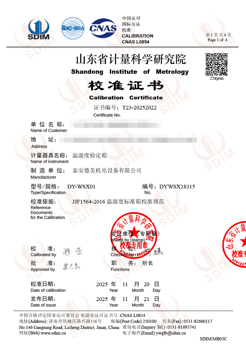 溫濕度檢定箱校準證書 2025-11-25 本文被閱讀 641 次