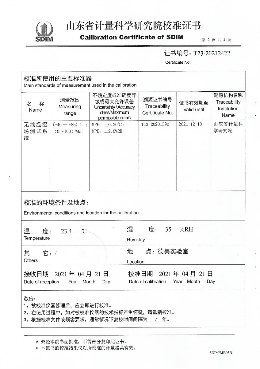 | 上一條:貴州中量計量測試檢測有限公司-冷鏡式露點儀校準證書 | 下一條: DY-HT1D-100C超低溫黑體輻射源 |