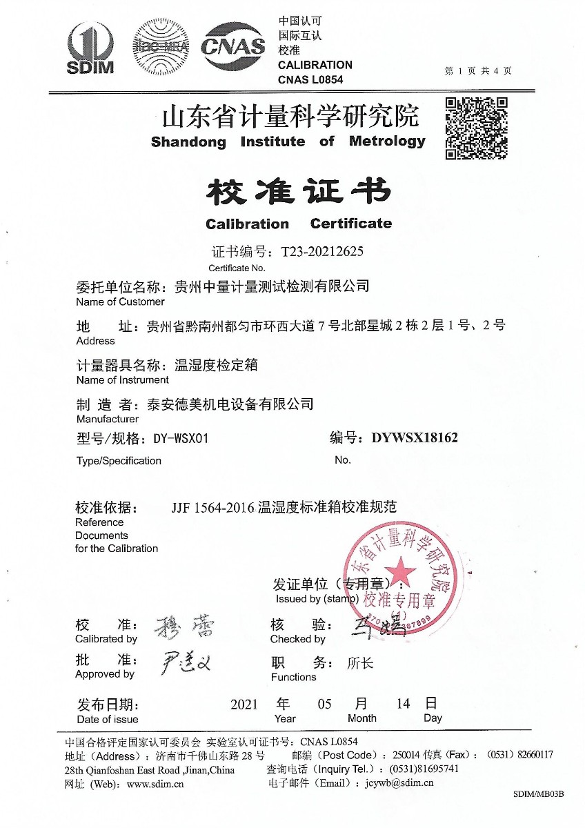 貴州中量計量測試檢測有限公司-溫濕度檢定箱 2021-5-22 本文被閱讀 14744 次