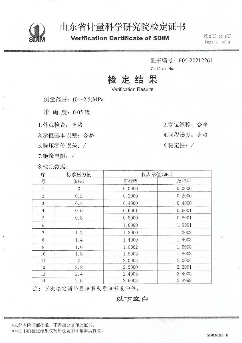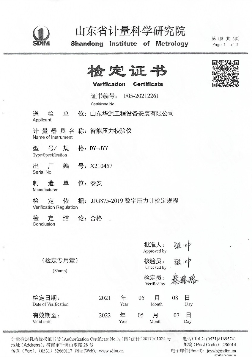 | 上一條:山東華源工程設(shè)備安裝有限公司-智能壓力校驗(yàn)儀X210456 | 下一條:零點(diǎn)恒溫器校準(zhǔn)證書 |