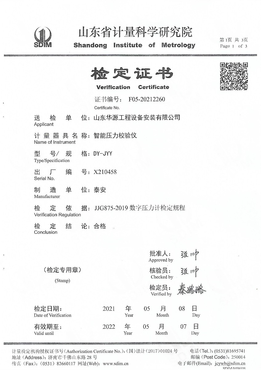 | 上一條:山東華源工程設(shè)備安裝有限公司-智能壓力校驗(yàn)儀X210457 | 下一條:零點(diǎn)恒溫器校準(zhǔn)證書 |