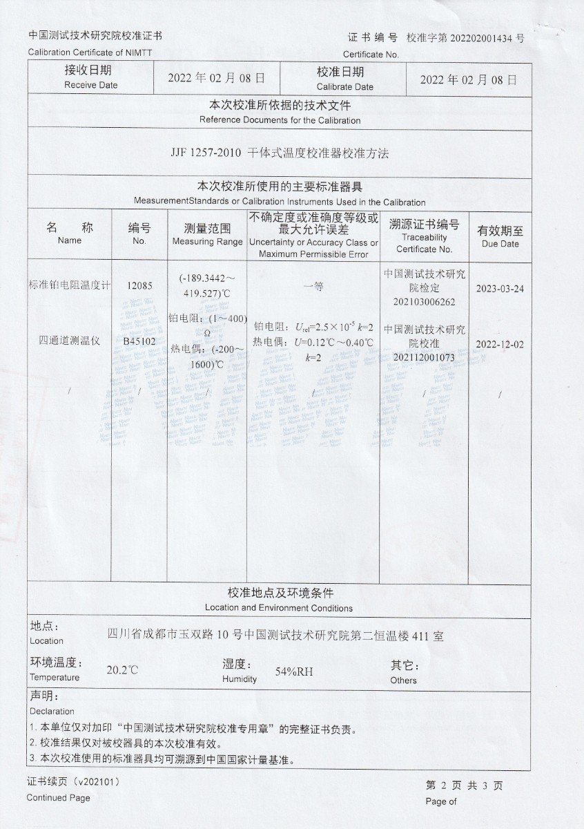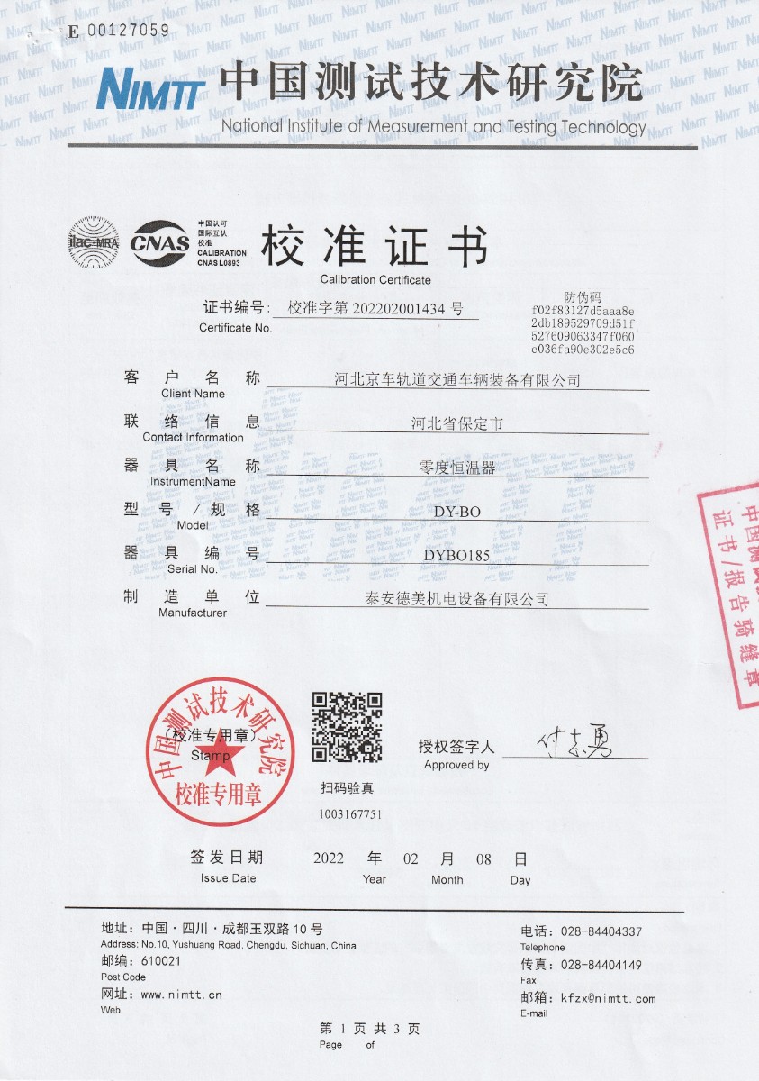 | 上一條:河北京車軌道交通車輛裝備有限公司S分度補(bǔ)償導(dǎo)線 | 下一條:便攜式干體爐(-30-150℃)校準(zhǔn)證書(shū) |