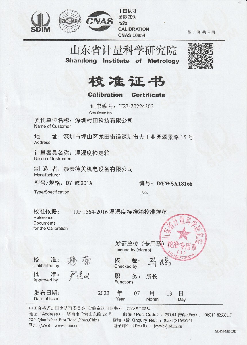 深圳村田科技有限公司-溫濕度檢定箱 2022-8-8 本文被閱讀 12779 次