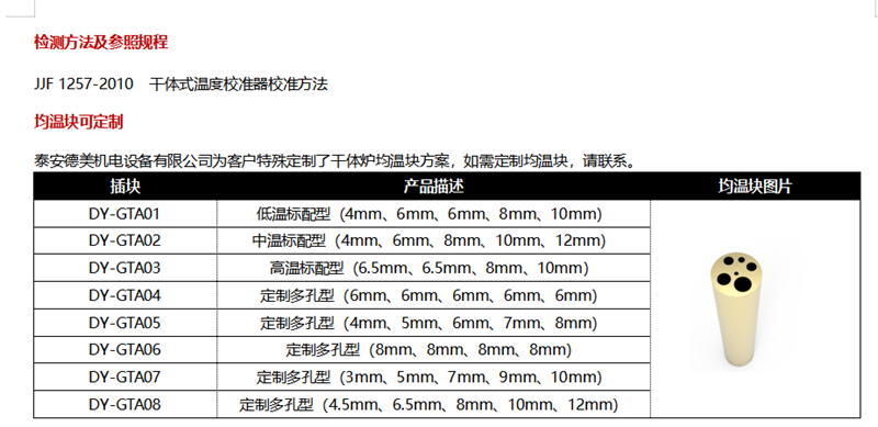 通過干體爐可以方便地校準(zhǔn)溫度傳感器、水銀溫度計(jì)、膨脹式溫度計(jì)、熱電偶、熱電阻、等溫度傳感器。