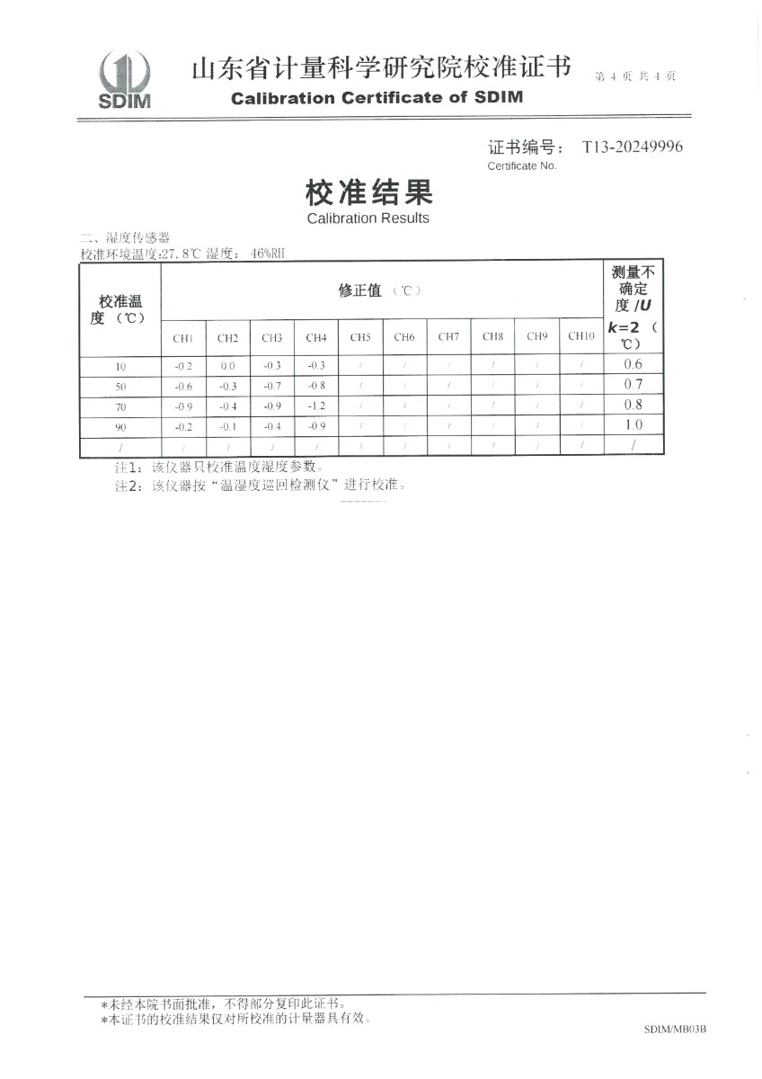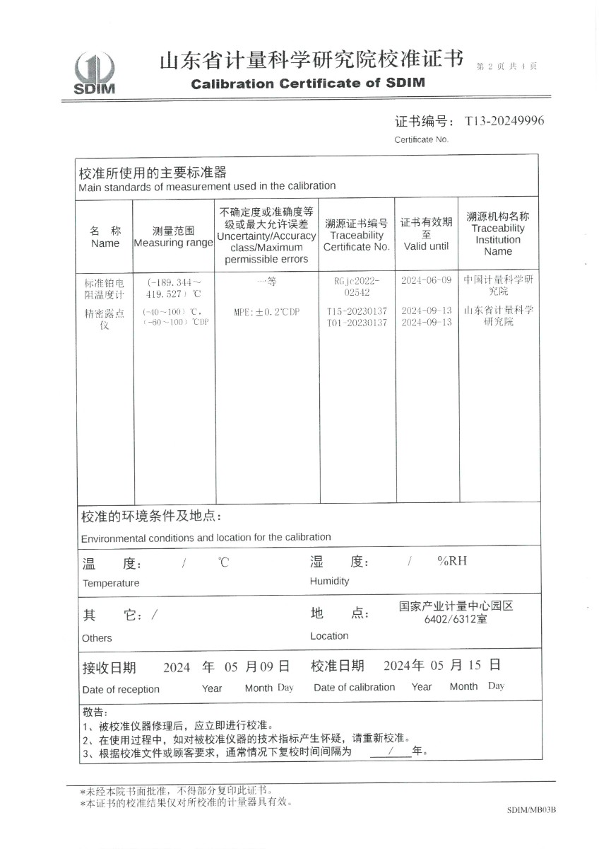 上一條:手持式高精度數(shù)字溫度計(jì)校準(zhǔn)證書(shū) | 下一條:超低溫面源黑體爐(-40-80℃)校準(zhǔn)證書(shū) |