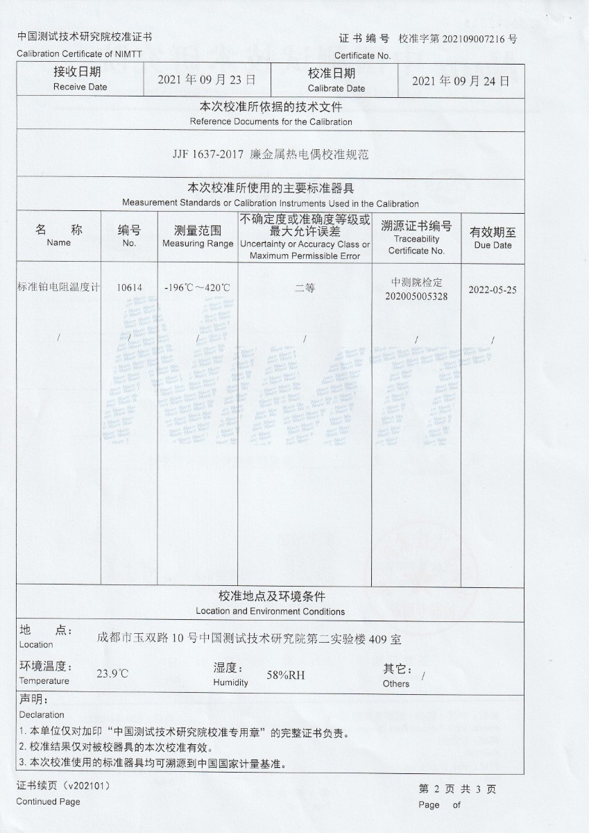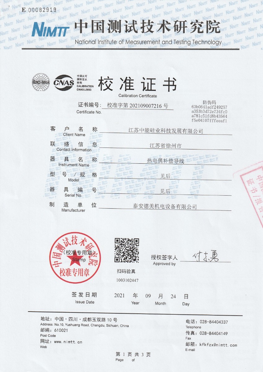 | 上一條:江蘇中能硅業(yè)科技發(fā)展有限公司-零度恒溫器 | 下一條:溫濕度檢定箱(-5~65℃)校準(zhǔn)證書 |
