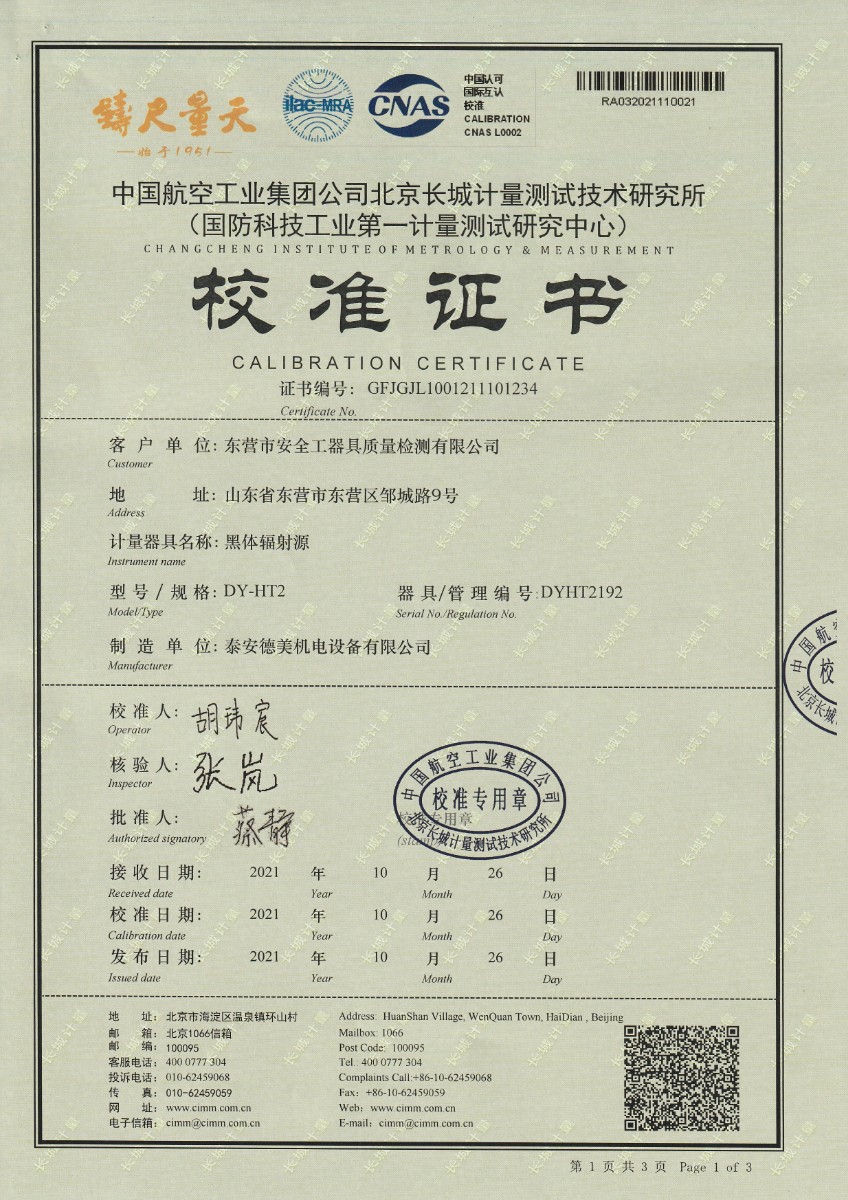 | 上一條:東營市安全工器具質(zhì)量檢測有限公司-黑體輻射源(-15-80℃) | 下一條:DY-HT2MF-800大面源黑體爐 |