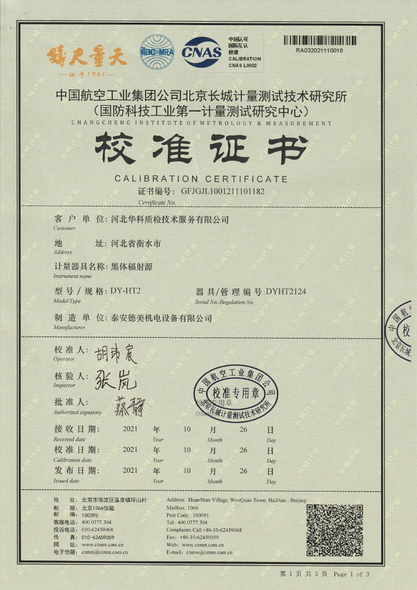 | 上一條:河北華科質(zhì)檢技術(shù)服務(wù)有限公司-黑體輻射源(DY-HT1) | 下一條:DY-HT2MF-800大面源黑體爐 |