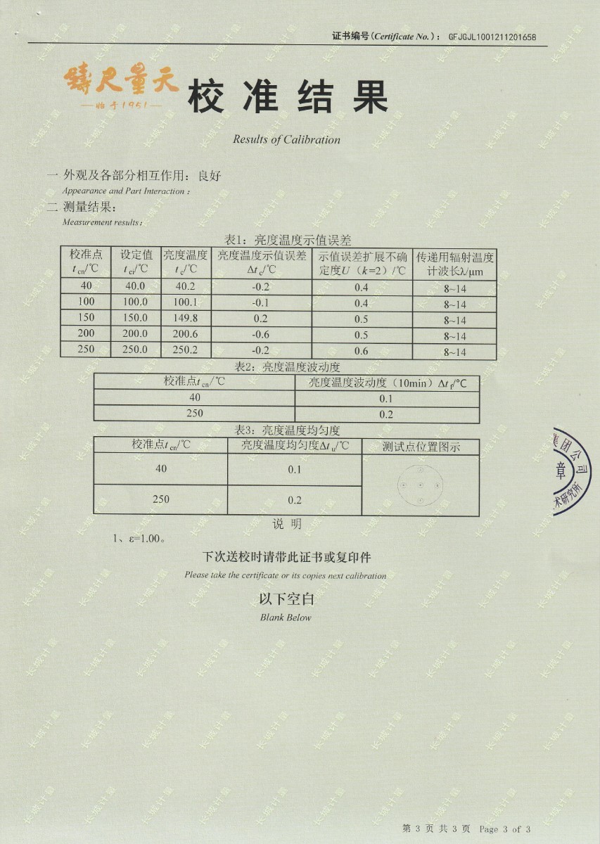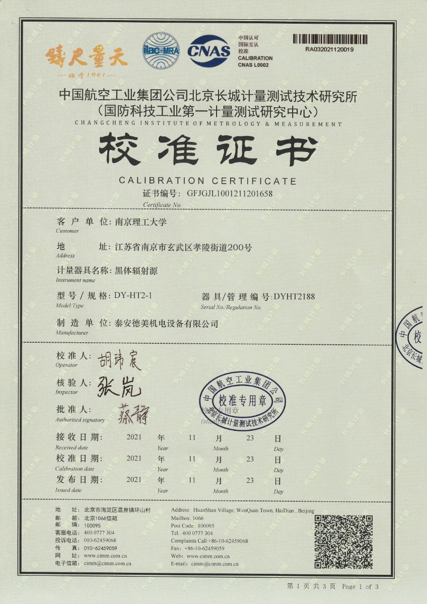 | 上一條:南京理工大學(xué)-黑體輻射源校準(zhǔn)證書-30-20℃ | 下一條:便攜式干體爐(-30-150℃)校準(zhǔn)證書 |