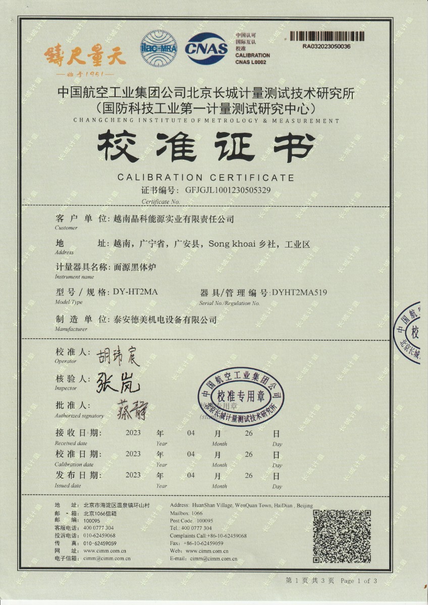 | 上一條:淮安捷泰新能源科技有限公司 黑體輻射源 校準(zhǔn)證書(shū) | 下一條:DY-HT2MF-800大面源黑體爐 |